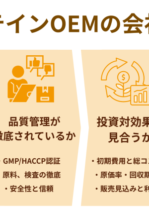 OEMへの投資対効果を製造単価だけで判断することは避けましょう。初期費用や製造単価、物流コストを含めた総費用に加え、販売見込み数やリピート率を試算したうえで、投資回収の見通しを立てることが重要です。
