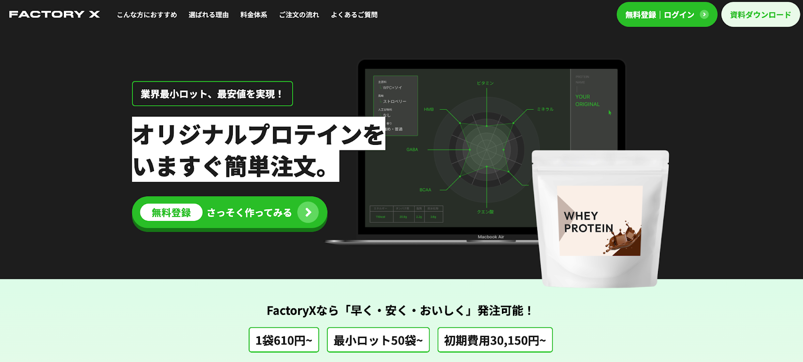 FACTORY Xは最小ロット50袋から発注が可能であり、個人事業主や小規模事業者向けOEMメーカーです。